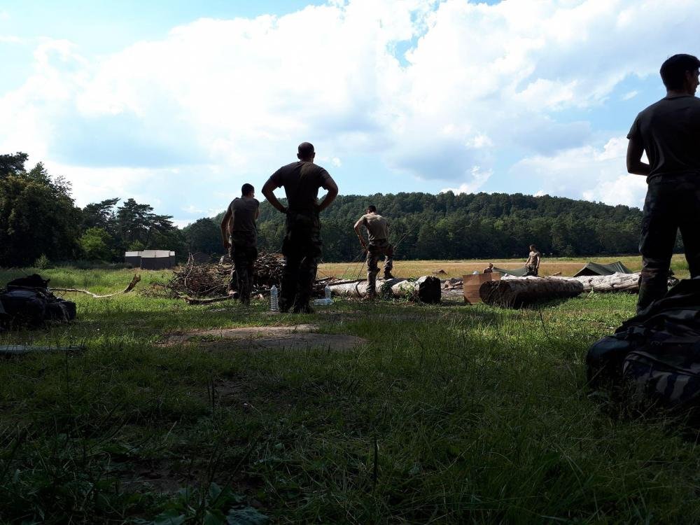 Nous avons passé 4 jours en bivouac à la fin de la deuxième semaine. Marche de nuit d'une douzaine de kilomètres, exercices en foret, faire sa tente, les rations, le feu de camp... Que de choses superbes.