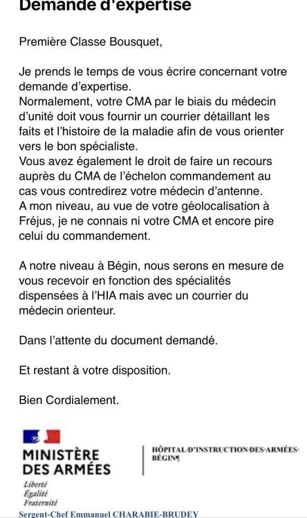 Ceci dit mon erreur m’ayant coûter mon aptitude tap suite à une visite avec la Colonel de caylus, m’ayant assurés que je retrouverais sans problème mon aptitude après une expertise.