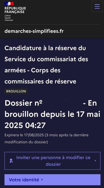 Bonsoir à tous, je reprends ici le sujet abordé lors de ma présentation : j'ai entamé les démarches en ligne pour une candidature au poste de réserviste au sein du Service du commissariat des armées sur le site https://www.demarches-simplifiees.fr/
