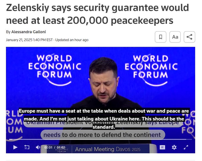 BTX Posté(e) 22 janvier 2025 Auteur Signaler Posté(e) 22 janvier 2025 Selon Zelensky, il faudra déployer 200 000 soldats européens entre les troupes russes et ukrainiens en cas de cessez-le-feu Photo Présidence ukrainienne Le président ukrainien Volodymyr Zelensky a estimé qu’au moins 200 000 soldats issus d'armées européennes devraient être déployés pour garantir la sécurité de l’Ukraine en cas d’une trêve avec la Russie et éviter une nouvelle invasion. « 200 000, c’est un minimum. C’est un minimum. Sinon, ce n’est rien », a-t-il déclaré mardi pendant la réunion annuelle du Forum économique mondial à Davos (Suisse), dans une discours partagé sur le site internet de la présidence ukrainienne ce mercredi. C’est la première fois qu’un haut responsable ukrainien évoque publiquement le chiffre d’un tel contingent alors que ce projet est discuté en coulisse depuis plusieurs mois entre Kiev et ses alliés occidentaux. On se souviendra que c’est le président français Emmanuel Macron qui avait avancé l’idée de stationner des troupes occidentales en Ukraine pour superviser un éventuel accord de cessez-le-feu avec la Russie, qui a lancé, il a bientôt trois ans, l’invasion de son voisin ukrainien et occupe environ 20% de son territoire. Par la suite, l’idée de déployer des troupes européennes sur le sol ukrainien a été évoquée à plusieurs reprises ces derniers mois sur fond de conjectures sur de possibles futurs pourparlers de paix entre la Russie et l’Ukraine. Ce contingent d’interposition serait déployé pour assurer le maintien d’un hypothétique cessez-le-feu. Mais pour l’instant, l’UE et l’OTAN n’ont pas l’intention d’envoyer des troupes, puisque l’Alliance a refusé de s’impliquer dans un soutien militaire actif à Kiev et que les moyens respectifs des Polonais, Britanniques ou encore Français, sont largement insuffisants pour une telle mission. À Kiev toutefois, on a évoqué, fin 2024, une « alliance des audacieux », regroupant cinq à sept pays européens favorables au déploiement de troupes sur le sol ukrainien. Citer Ya Rab Yeshua.